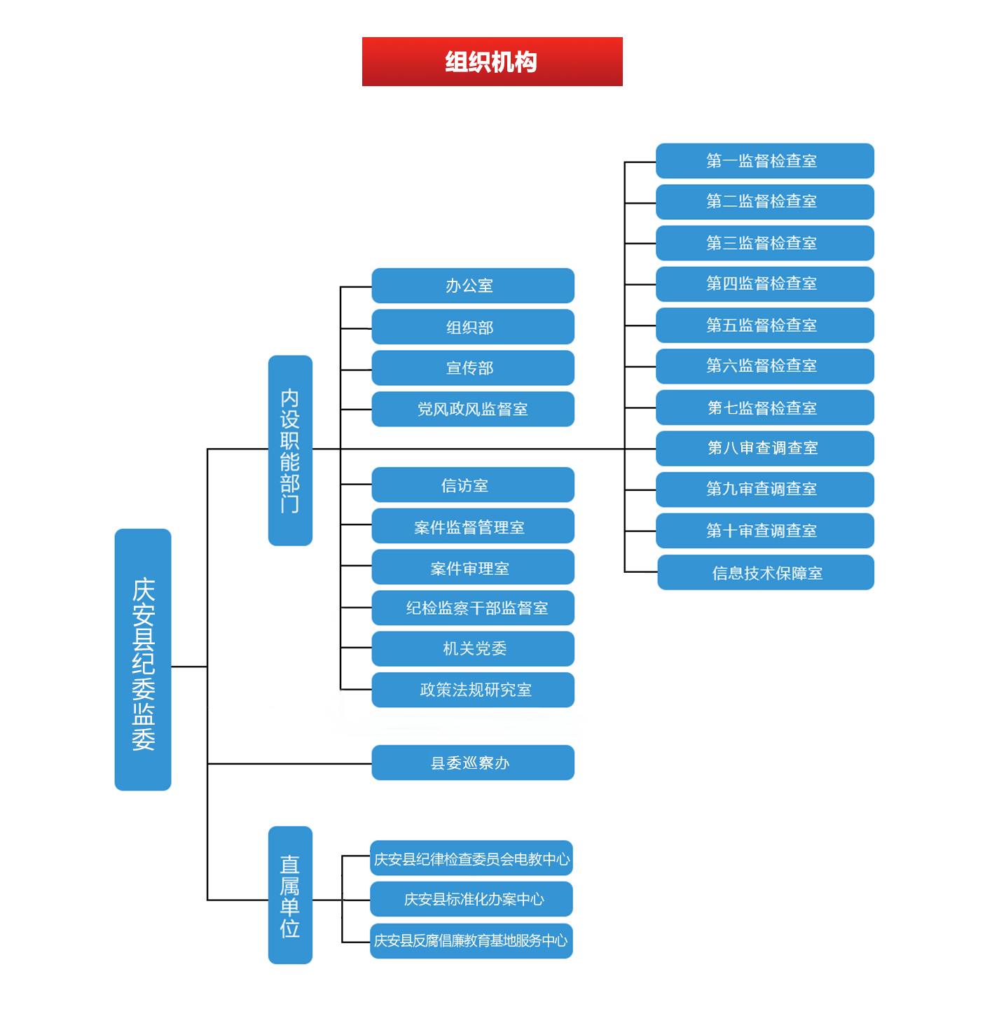 (十一)政策法规研究室(复查复议室)。负责综合分析全面从严治党、党风廉政建设和反腐败工作情况,开展政策理论及重大课题调查研究;起草重要文件文稿;负责提出全县纪检监察法规制度建设规划、计划和立法立规建议;根据职责权限起草、修改纪检监察法规制度,参与起草制定相关法规和规范性文件;负责纪检监察法规制度的咨询答复、解释指导、立法立规后评估、备案审查、清理、编纂;承办党员对县纪委作出的党纪处分或者其他处理不服的申诉案件、监察对象对县监委作出的涉及本人的处理决定不服的申请复审案件,以及其他需要由县纪委监委办理的申诉、复核案件等。